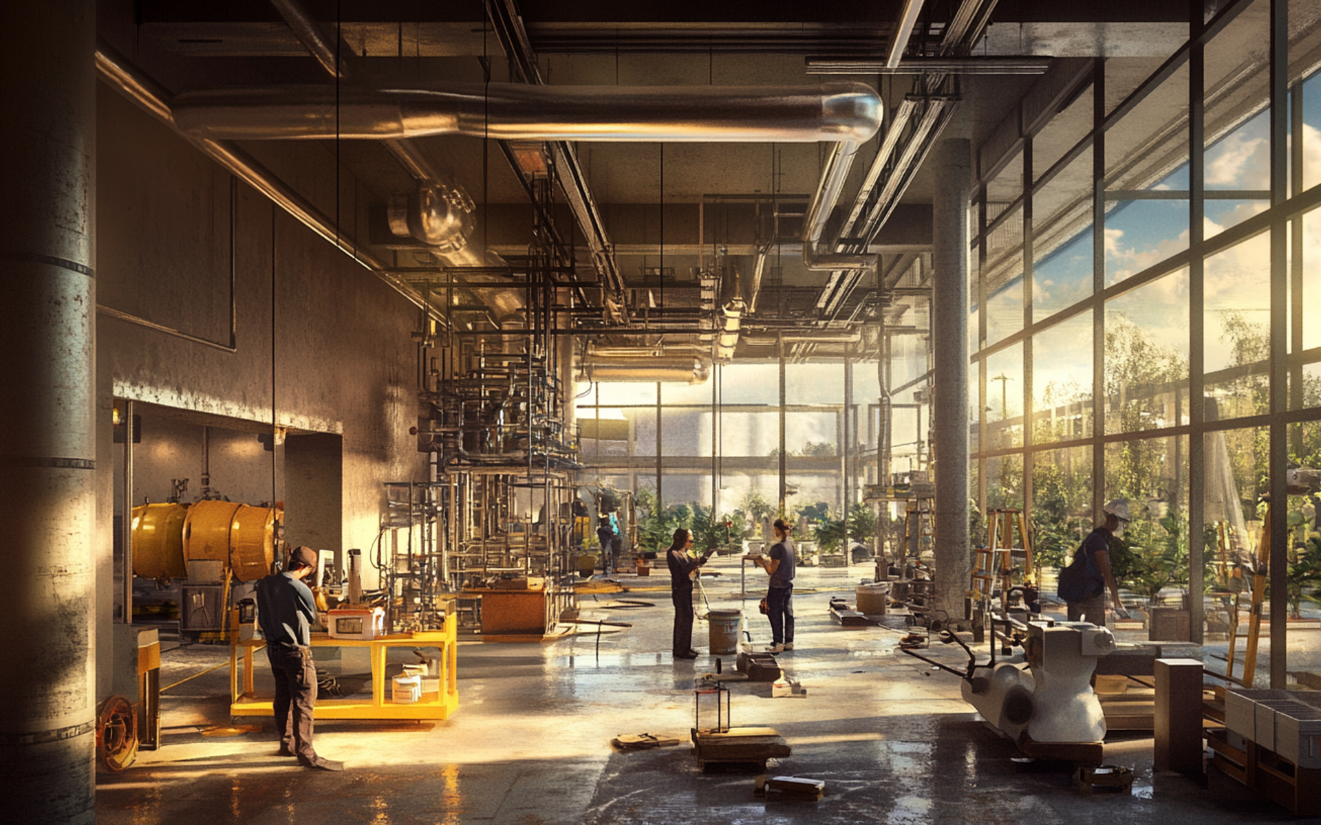 där man utvecklar och tillverkar saker, sköter underhåll eller arbetar med återvinning.
